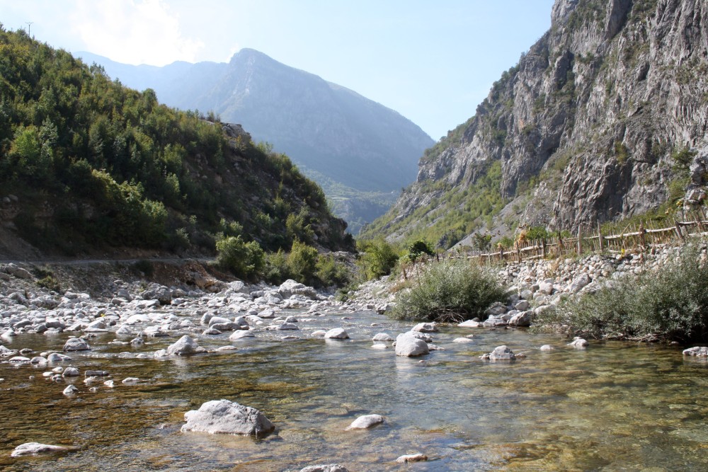 První odbočka doleva, která vede k horám je naše. Po několika kilometrech skončí špatná asfaltová silnice a už jen prašná cesta nás vede kolem řady bagrů na vrchol. Jsme rádi, že jsme to stihli ještě v tomto stavu, protože za pár let tu bude všude asfalt. Nesčetnými serpentýnami se dostáváme do údolí řeky Cem. Všichni jsou úplně v řiti z toho co je kolem nás, neustále stavíme a uchováváme naše zážitky na různá media našich telefonů a foťáků. Projíždíme něčím neskutečným a pomalu hledáme místo na přenocování. S tím to bude poněkud složitější, jak posléze zjišťujeme, protože ve skalách není prakticky žádné místo na rozložení stanů. Opouštíme údolí a z vesničky Lëpushë stoupáme až do 1500 m n.m. kde nacházíme místo na staré těžební cestě. Pěkný plac pro stany a čtyřkolky s horským potokem jen pár metrů vzdáleným. Vybalujem vařiče a za několik minut už voní jelení ragú z našich ešusů. Nic nezbylo, tak že ani medvědi, kteří by tu měli být v horách přítomni, nic nenajdou. Pro jistotu bereme do stanů vzduchové houkačky, ale jestli to pomůže …