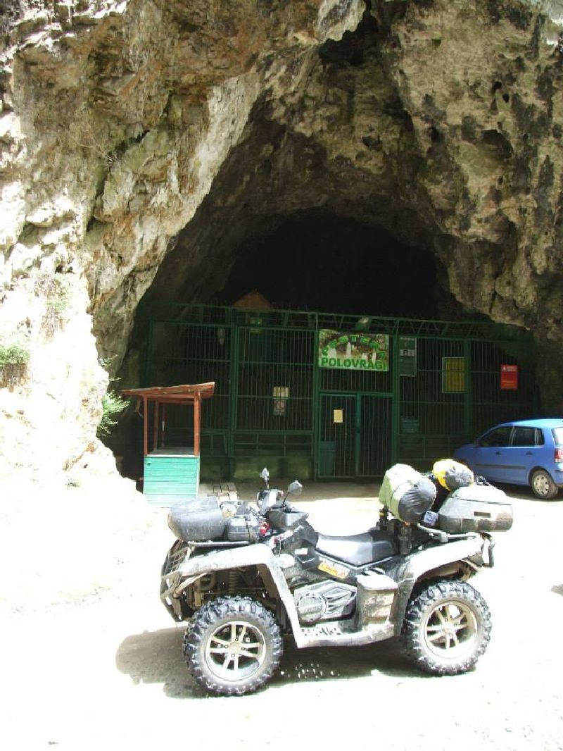 Nad městečkem Polovgari zamíříme ke stejnojmenému klášteru (Mânăstirea Polovragi) a jeskyni (Peștera Polovragi). Na klášter jen mrkneme ale u jeskyně parkujeme. Hned před vstupem je k vidění parádní soutěska, kterou fotíme a mezitím přichází paní průvodkyně se strážcem parku. Trošku nám cuká protože jsme směrem k jeskyni projeli zákaz vjezdu ale nechtělo se nám nechávat čtyřkolky u kláštera bez dozoru. Jaké je ale překvapení když nám správce parku ochotně ukazuje že si máme mašiny odstavit podél cesty a paní průvodkyně už otevírá jeskyni. Dovnitř jdeme všichni jenom Keepera necháváme venku v družném hovoru se strážcem. Do jeskyně vstupujeme s dojmem že to bude „blbodíra“ dlouhá pár desítek metrů ale opak je pravdou. Procházíme velmi pěkně zdobenou jeskyní, kterou mniši z kláštera leta používali k úkrytu ale i jako lazaret (průvodkyně ochotně ukazuje lůžko z obrovských krápníků). Prohlídka je zajímavá i tím, že se po jeskyni můžete pohybovat kdekoliv, takže si i naberete do bot či omlátíte hlavu o nízký strop (můj případ). Další zajímavostí jsou zimující netopýři jejichž trus je dle tvrzení průvodkyně víceméně čisté železo z vody zde v jeskyni. Zhruba po 20ti minutách jeskyni opouštíme a dozvídáme se, že je dlouhá přes 12 kilometrů a lze si jí prohlédnout celou v rámci akce, která se koná cca 1x do měsíce (nafasujete helmy a vybavení a průvodce, který to s Vámi absolvuje). No takovou velkou prohlídku bychom někdy mohli zkusit. Venku sedáme na stroje a dostáváme informace k další cestě. Můžeme prý v pohodě pokračovat údolím přes Cheile Olteţului podél říčky Oltet.